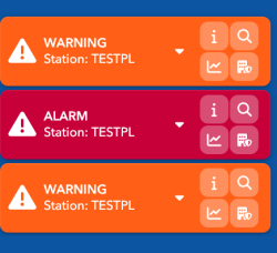 The triangle color indicates status: ๐ข green โ normal, ๐ orange โ warning, ๐ด red โ alarm. If a sensor is inactive or undergoing maintenance, a wrench icon